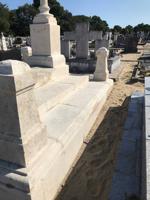 Les Ets Reynal, société fondée en 1885, restaurent et habillent vos caveaux en pierre ou en granit sur le cimetière de La Teste de Buch. Dans le cas présent, le caveau en pierre n'avait jamais été restauré. Un figuier avait même poussé dans les joints de la tombale supérieure en pierre. Les travaux ont été les suivants :